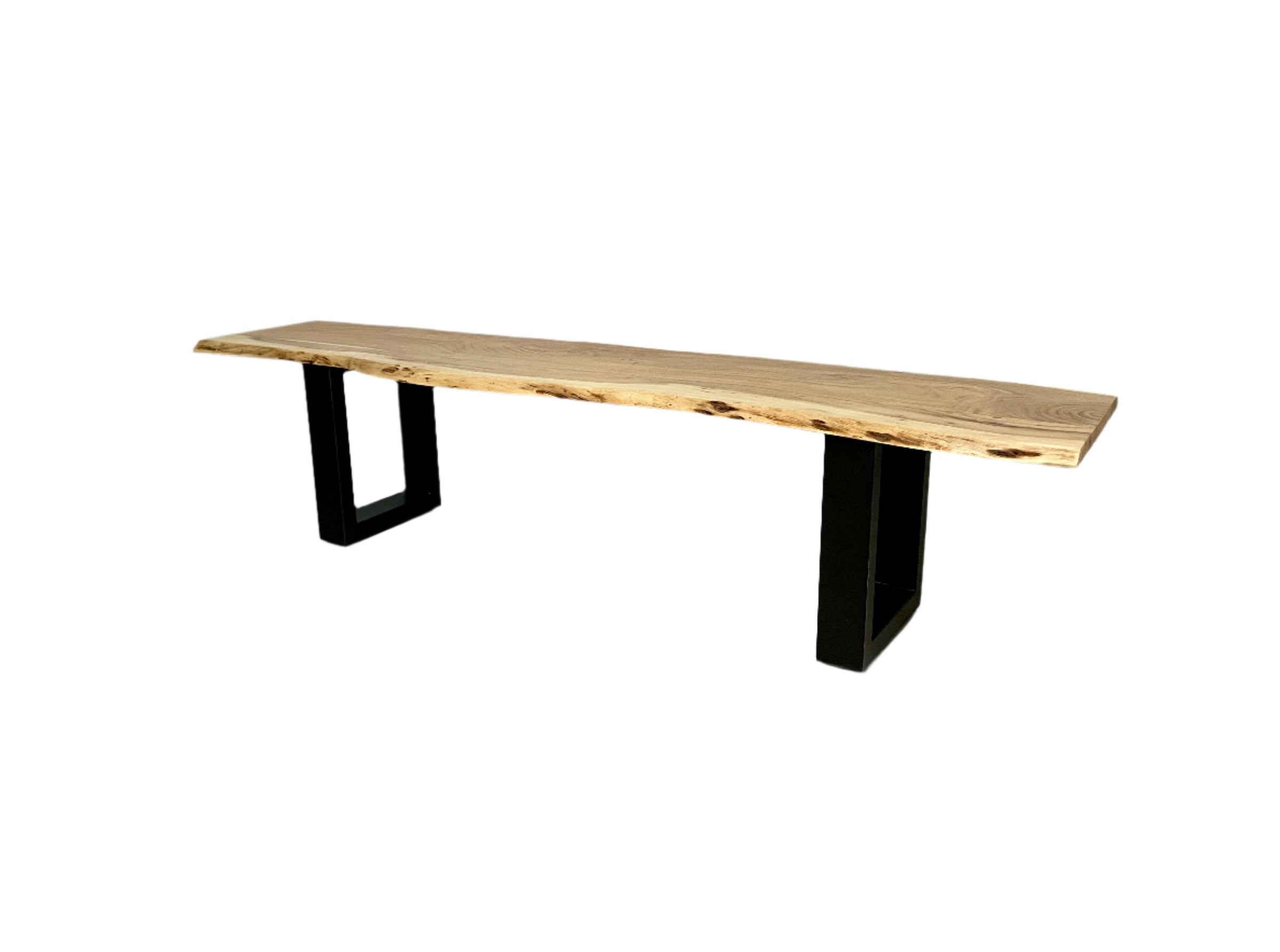 - Matériaux: Bois d’acacia Live Edge, pattes en métal noir