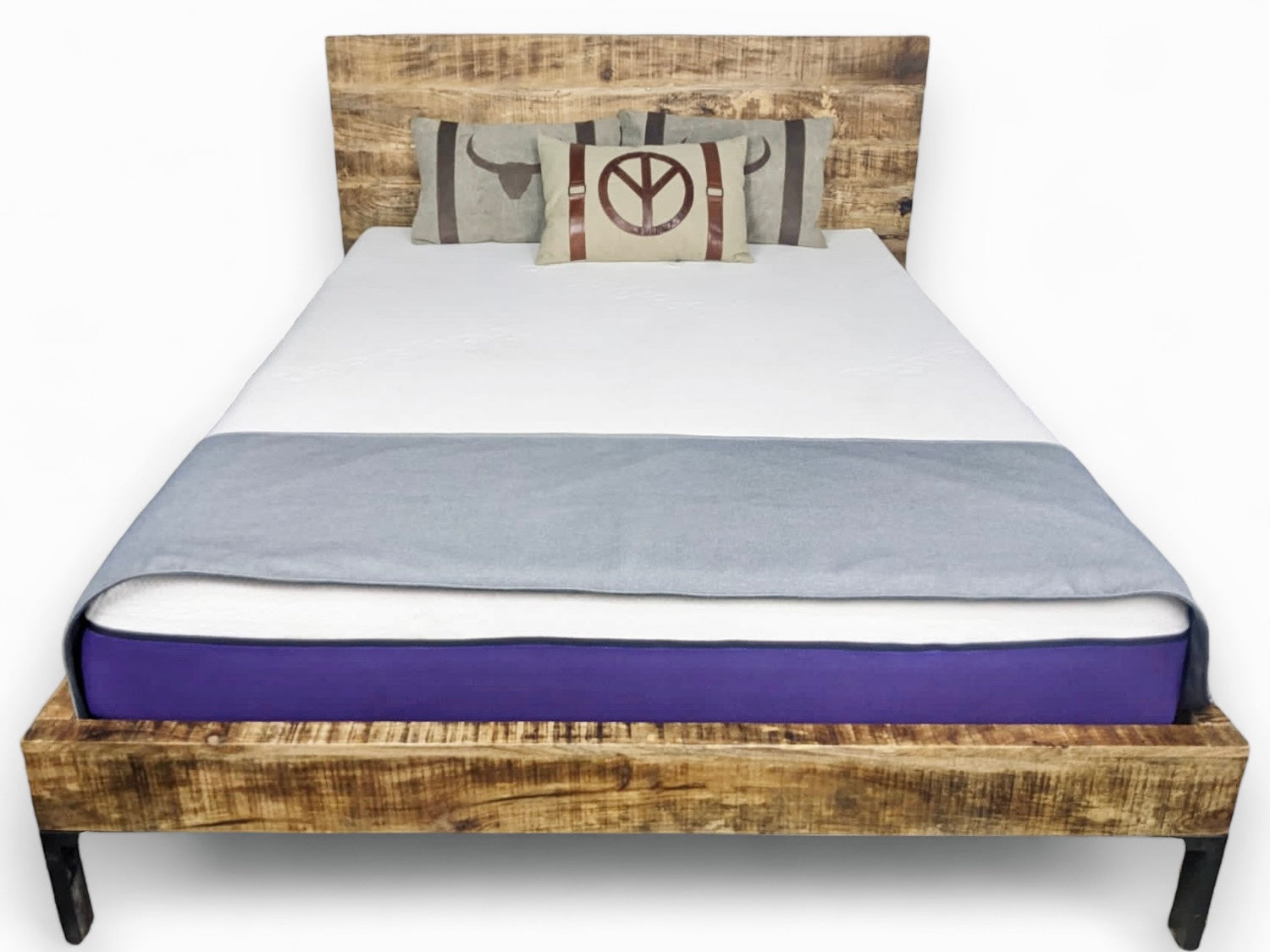 Ce lit Sagar en bois de manguier et métal apporte une touche industrielle et élégante à votre chambre. Disponible en taille Queen et King, il offre un style robuste et raffiné grâce à ses matériaux de haute qualité.