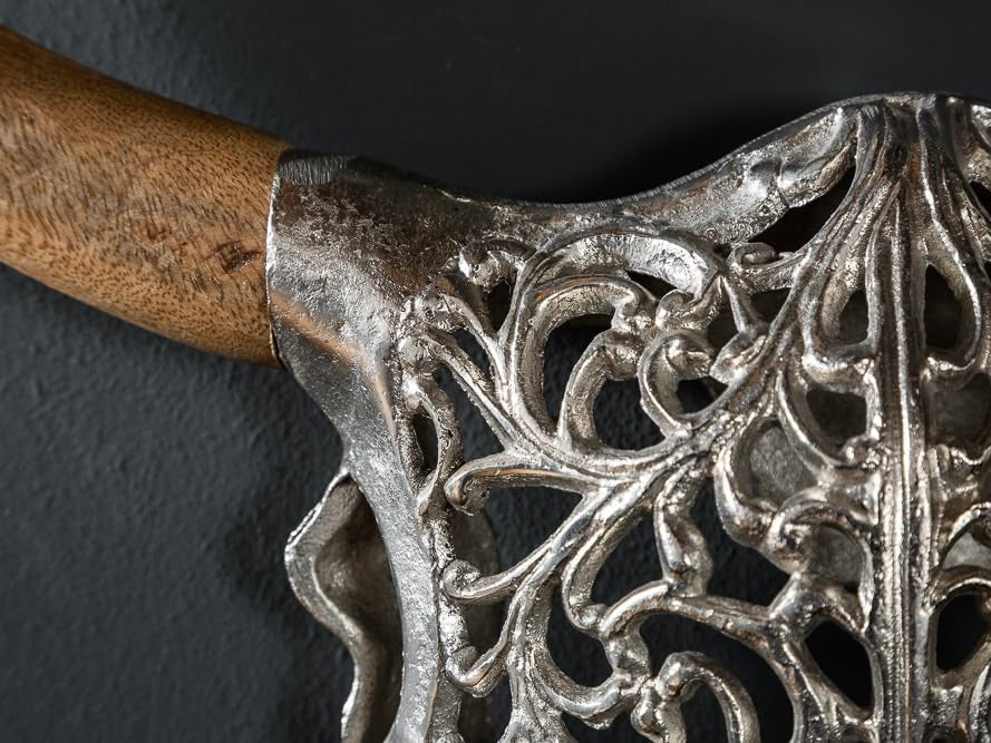 Chaque détail du crâne a été finement sculpté, offrant un relief raffiné qui capte la lumière et sublime votre décoration. Parfait pour un intérieur industriel, bohème ou ethnique chic, il peut être fixé au mur ou posé sur un meuble pour un effet saisissant.