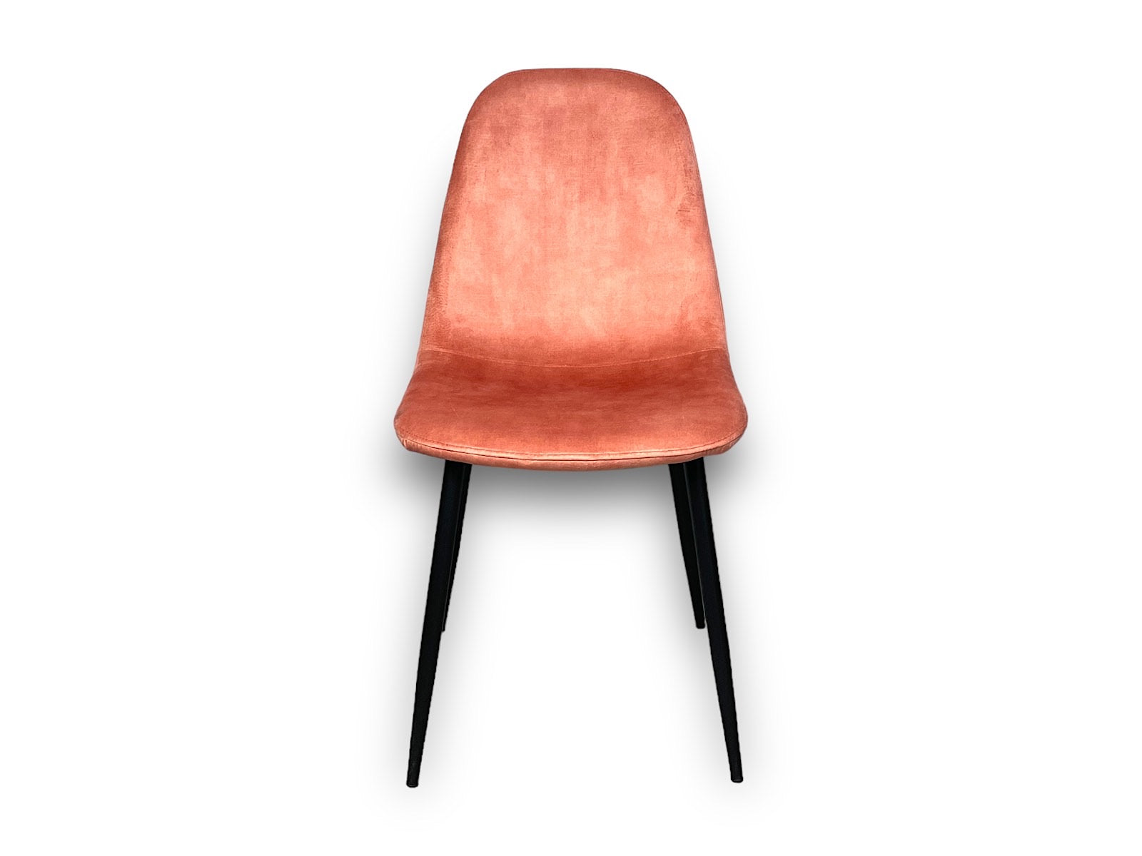 Élégance et confort se rencontrent dans cette chaise au design arrondi, revêtue d'un tissu doux et respirant type velours de couleur rose saumon. Son allure simple et raffinée en fait un ajout sophistiqué à tout intérieur.