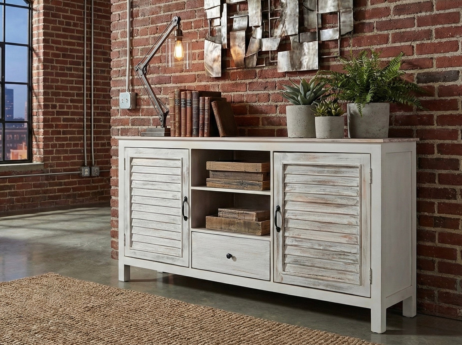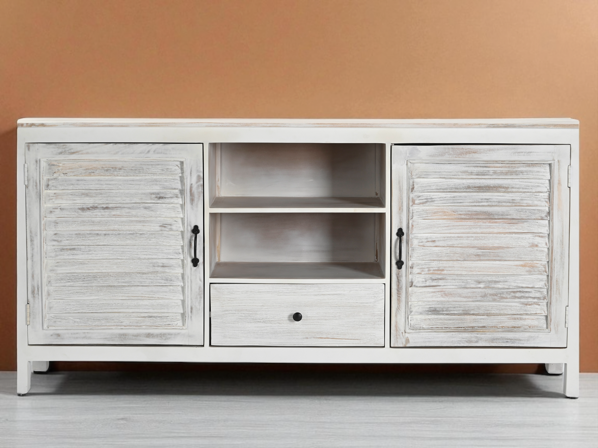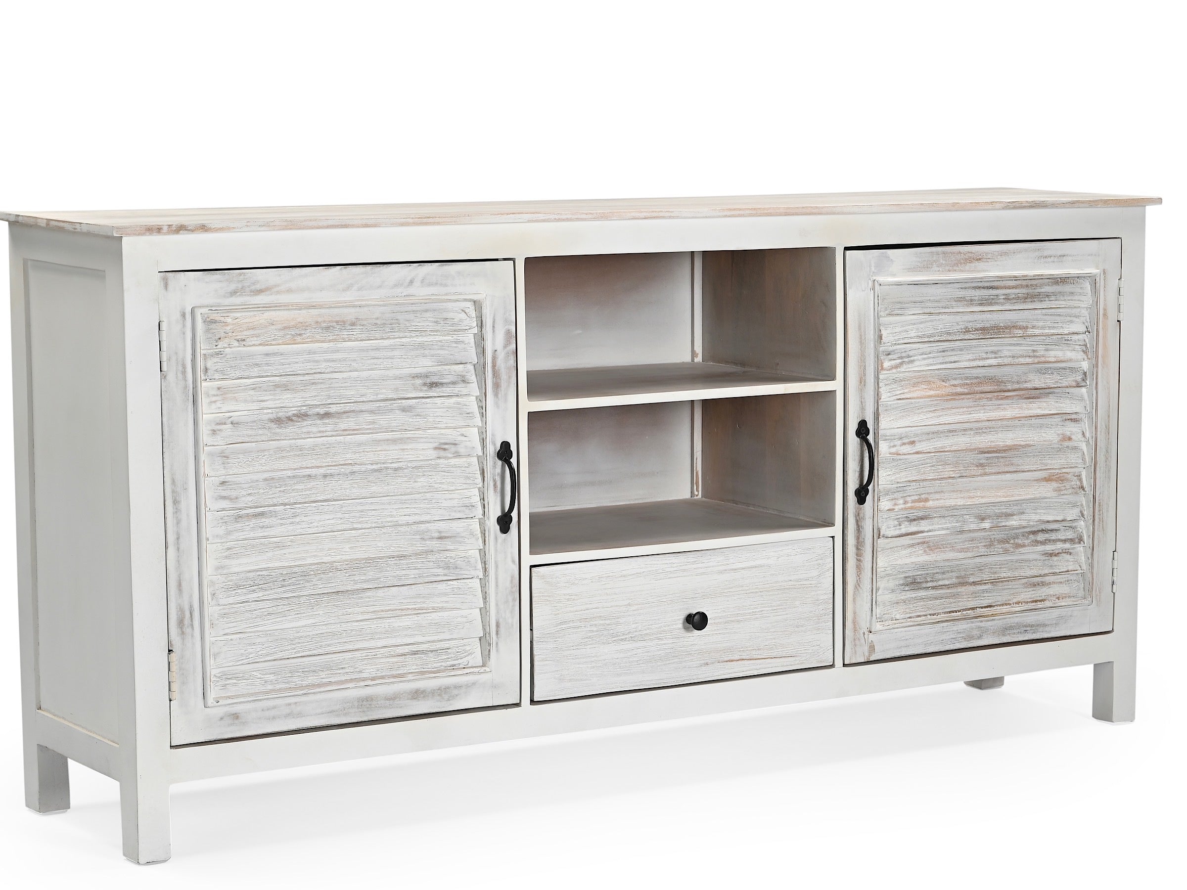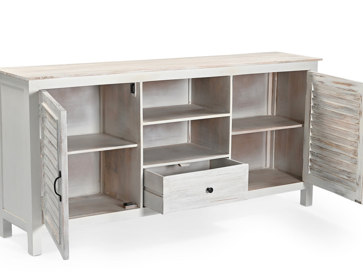 Alliez élégance et praticité avec ce buffet Montauk en bois de manguier massif blanchi. Sa structure robuste et ses finitions soignées apportent du caractère à votre intérieur, tout en offrant un espace de rangement fonctionnel.
