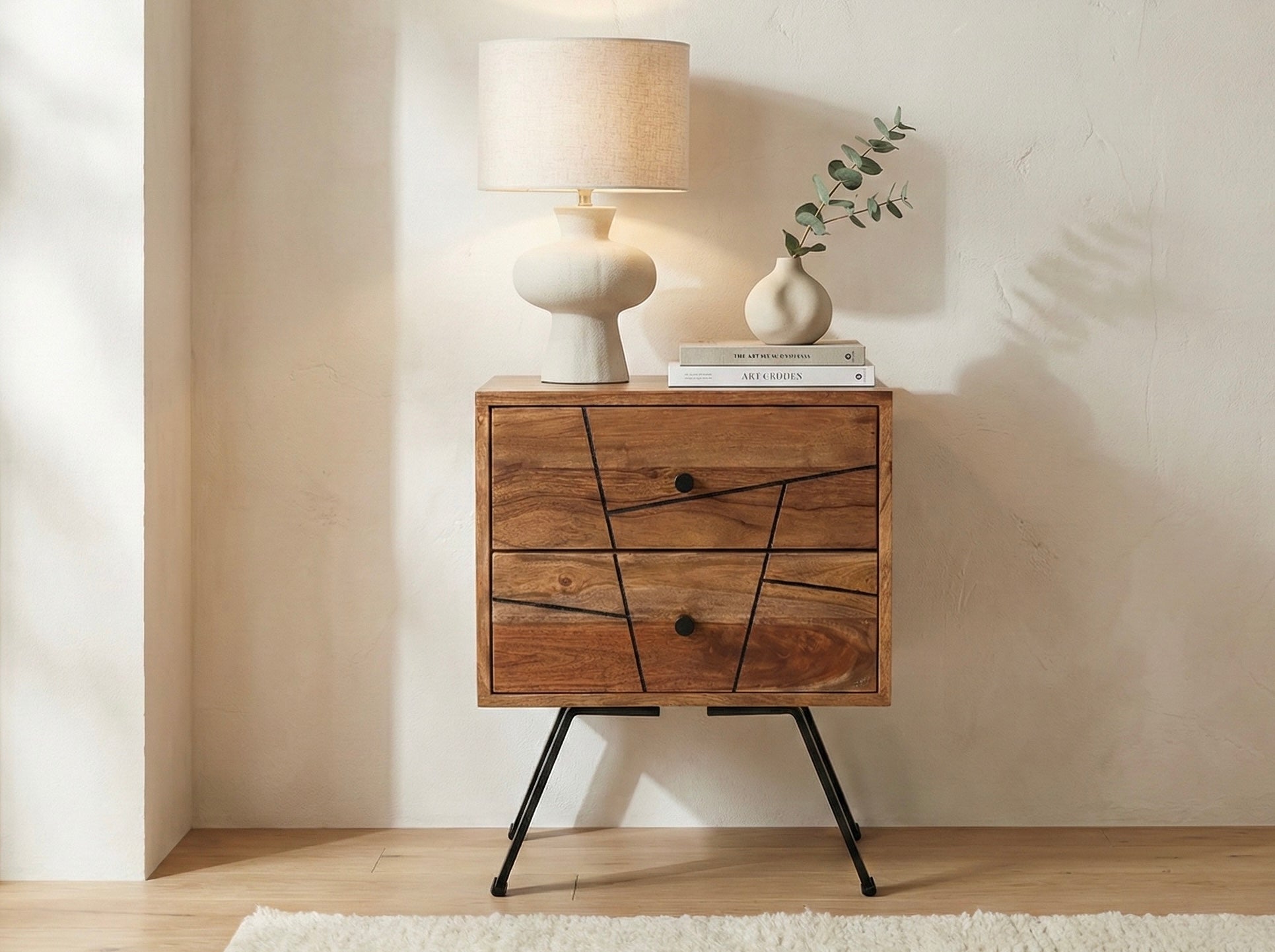 Ajoutez une touche de charme naturel et de fonctionnalité à votre chambre avec cette table de nuit Palma en acacia, élégante et pratique. Son design raffiné et ses lignes design s’intègrent parfaitement dans différents styles de décoration, tout en offrant un espace de rangement supplémentaire.