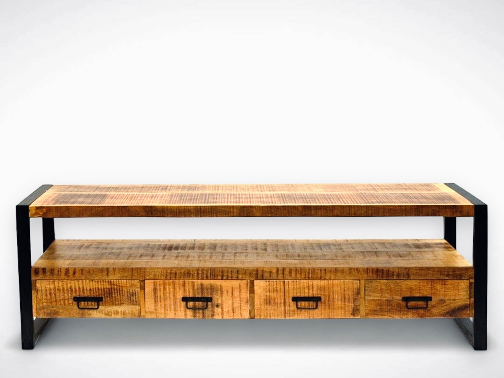 Conjuguant le charme rustique du bois de manguier et la touche industrielle du métal noir, ce meuble télé est conçu pour être à la fois fonctionnel et esthétique. Avec ses quatre tiroirs spacieux, il propose un espace de rangement substantiel tout en ajoutant une note élégante à votre salon.