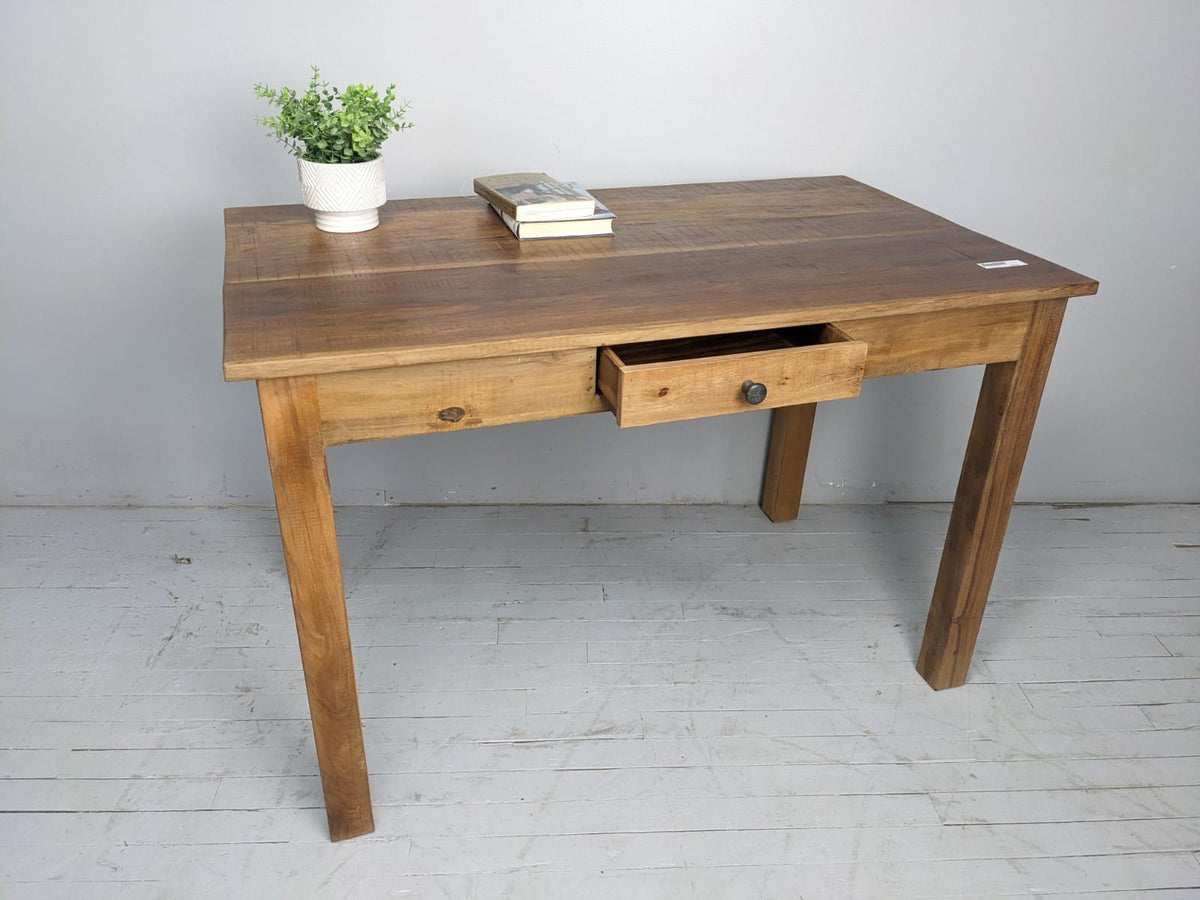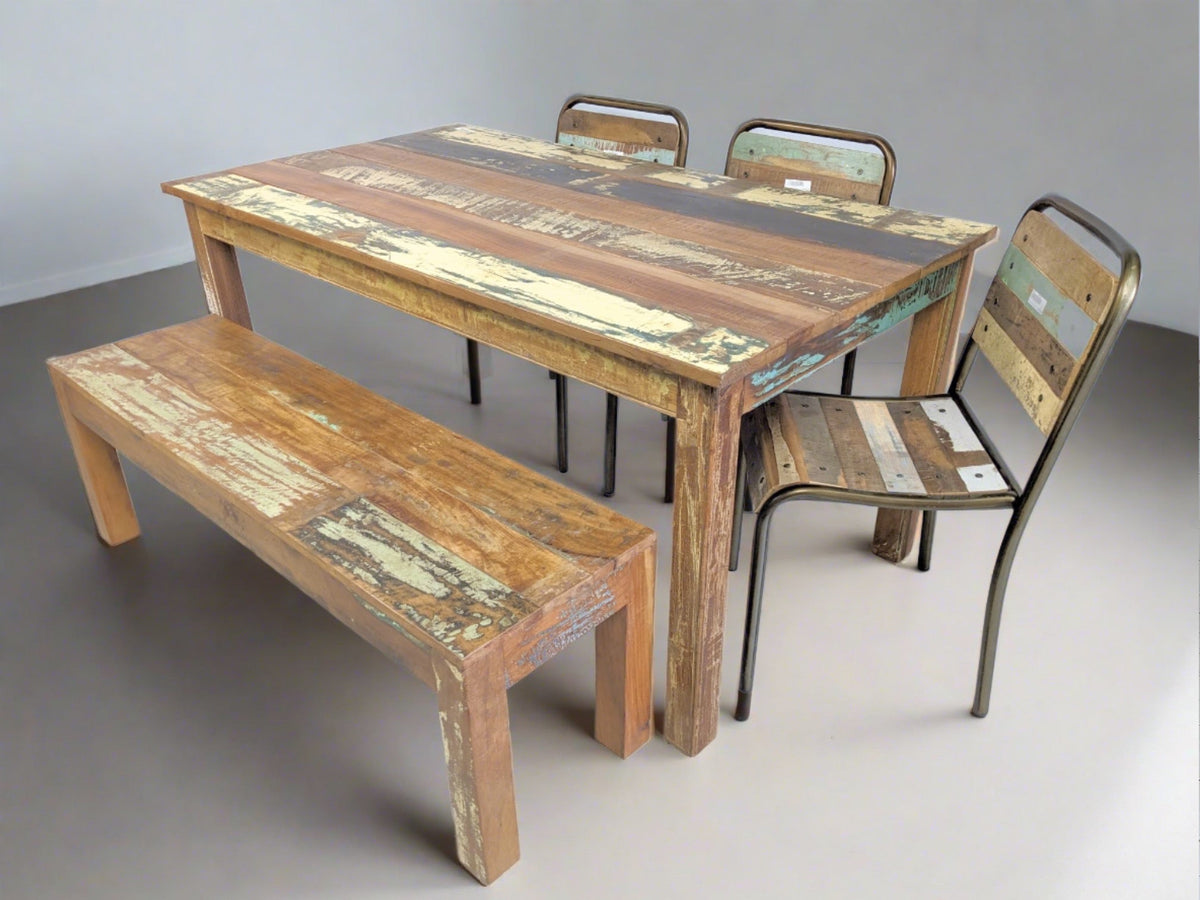 Table à diner en bois recyclée pour un style convivial en famille ou entre amis.