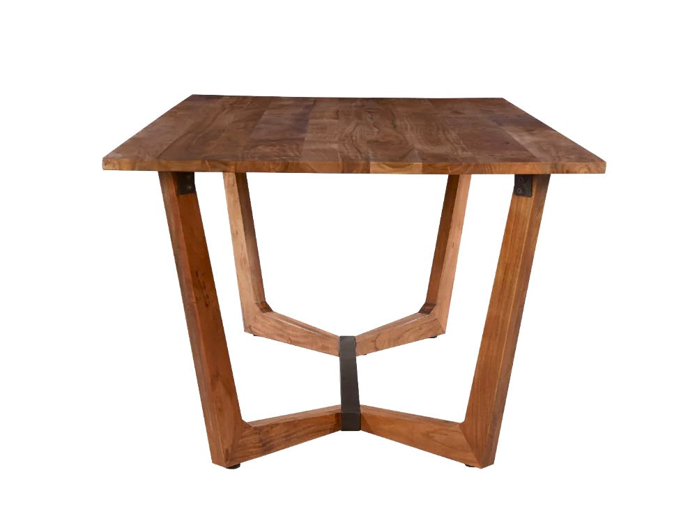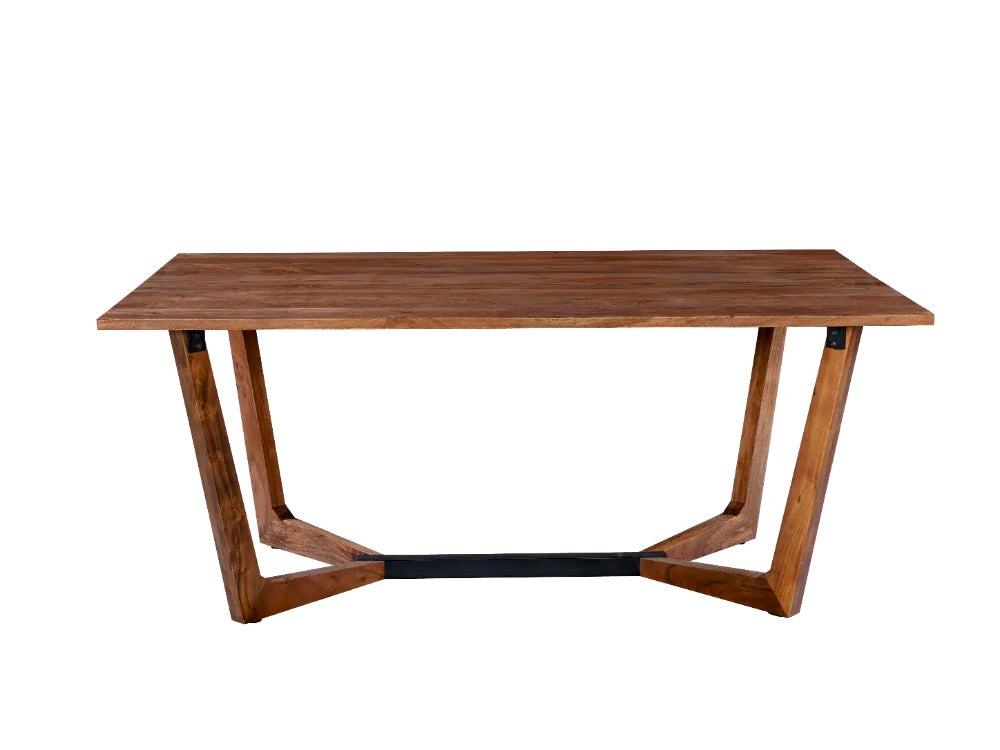 Découvrez la table a diner Sidney qui associe un design contemporain de par sa conception avec le  coté rustique du bois d'acacia. Son plateau rectangulaire repose sur une base à tréteaux en forme de V, reflet d'un design moderne.