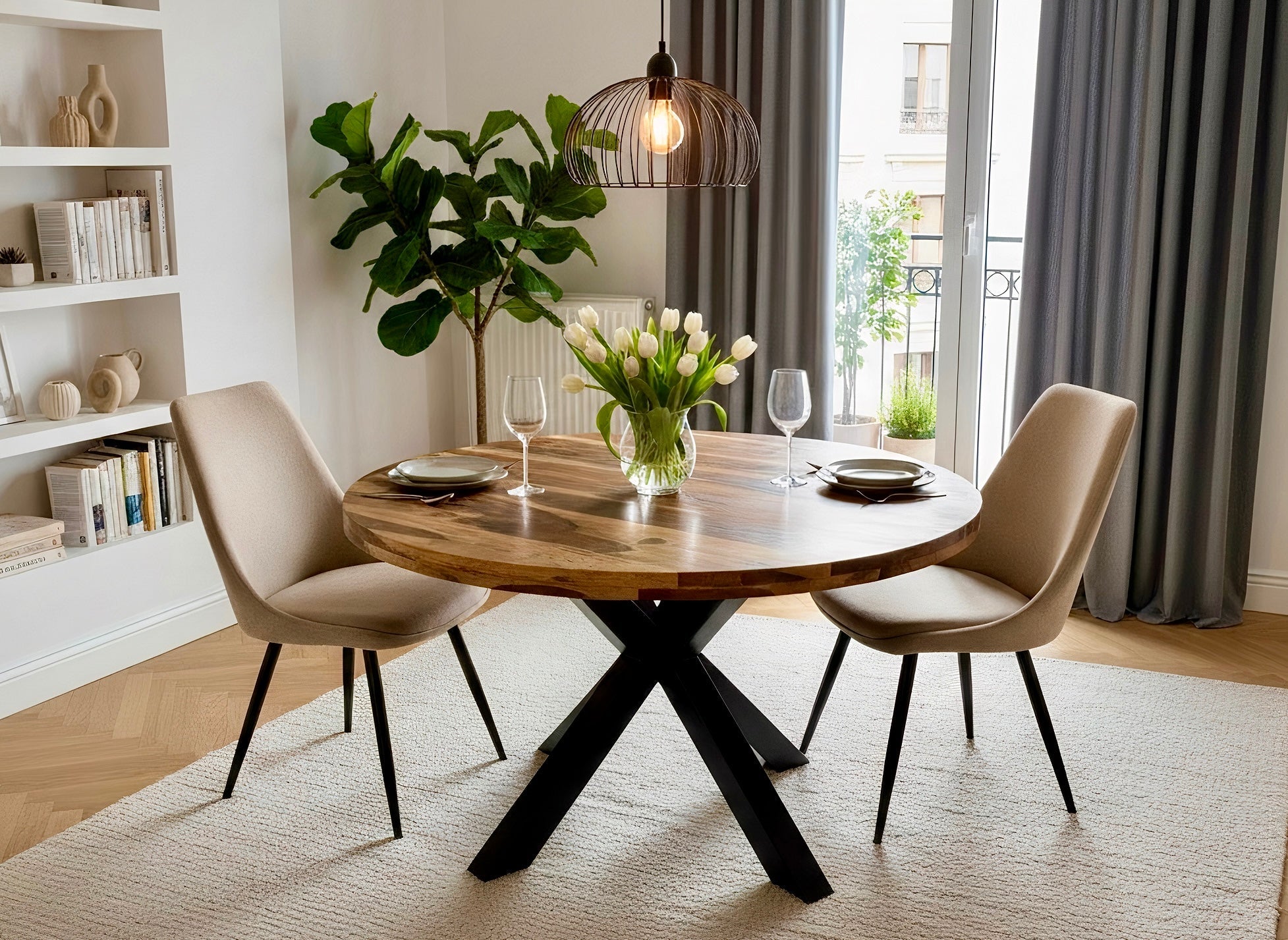 Fabriquée à partir de bois de rose de première qualité, chaque table est unique, mettant en valeur la beauté naturelle et la richesse des grains du bois. Sa forme ronde crée une atmosphère chaleureuse et accueillante, idéale pour des repas conviviaux ou des réunions informelles. Elle est disponible en 4 tailles et 3 couleurs