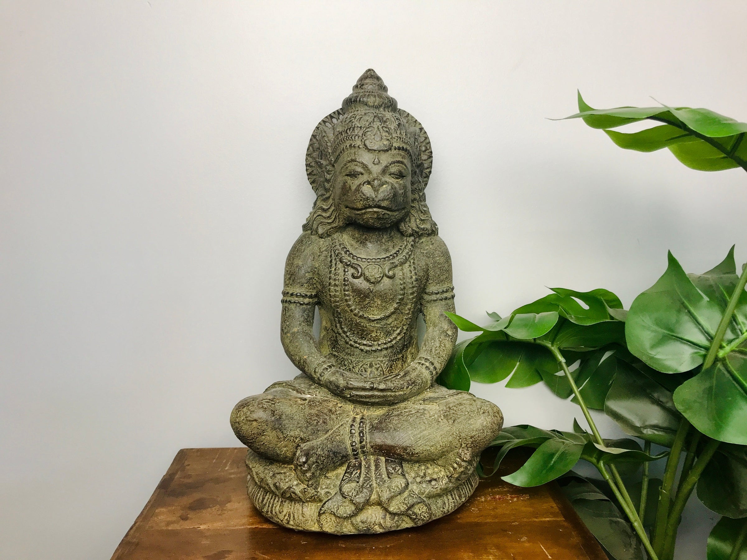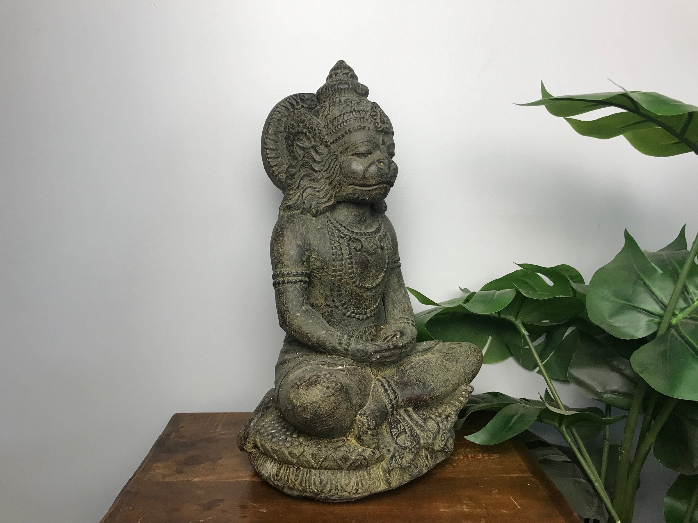 Cette statue de Hanoman le guerrier singe, fabriquée en pierre et béton, est idéale pour orner un jardin, un hall d'entrée ou un salon. Elle évoque un sentiment de majesté et de tranquillité, apportant une touche de sérénité à votre espace.
