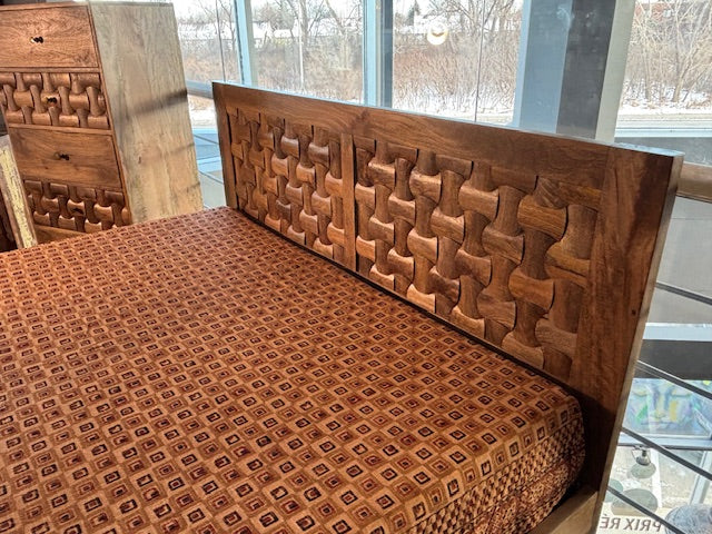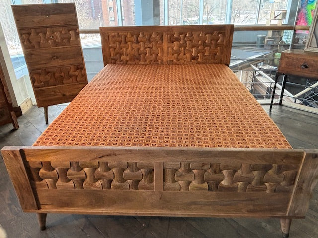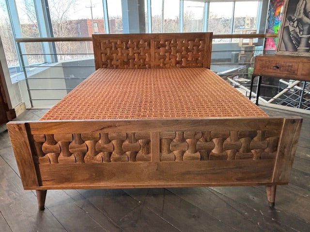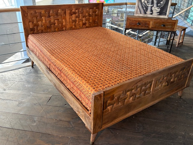 Offrez à votre chambre une touche d'authenticité et de raffinement avec ce magnifique lit Sajara. Conçu à partir de bois massif de manguier, un matériau réputé pour sa solidité et sa beauté, ce lit allie charme naturel et durabilité. Avec sa ligne travaillée et sa finition soignée, il s'intègre harmonieusement dans tout type de décoration, du style moderne au plus traditionnel.