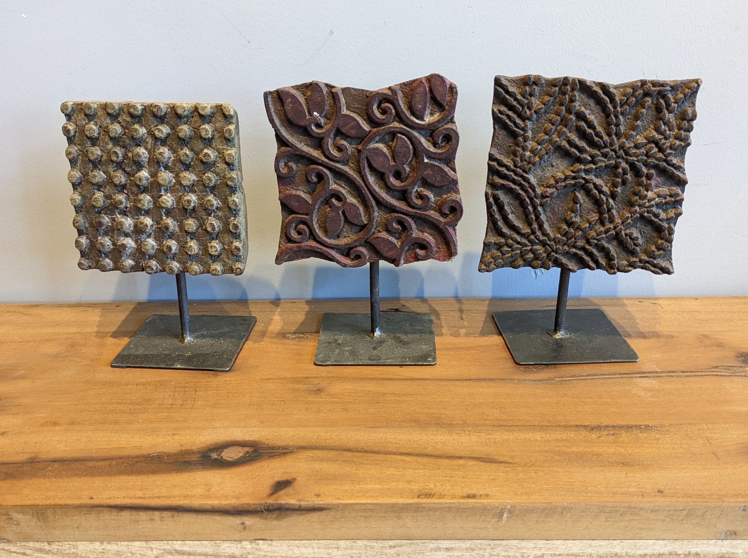 Ces moules en bois sur pied, disponibles en différentes formes, apportent une touche unique et artistique à votre décoration. Chaque pièce est montée sur un socle en fer, et les formes varient, faisant de chaque moule une pièce unique. Nous vous contacterons pour confirmer votre choix avec des photos ou vous offrir un remboursement.