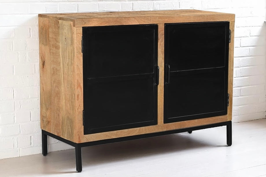 Ce petit buffet Sagar en bois de manguier et métal ajoute une touche industrielle et élégante à votre intérieur. Avec ses dimensions compactes et ses matériaux de haute qualité, il est parfait pour le rangement tout en apportant du style à votre espace.