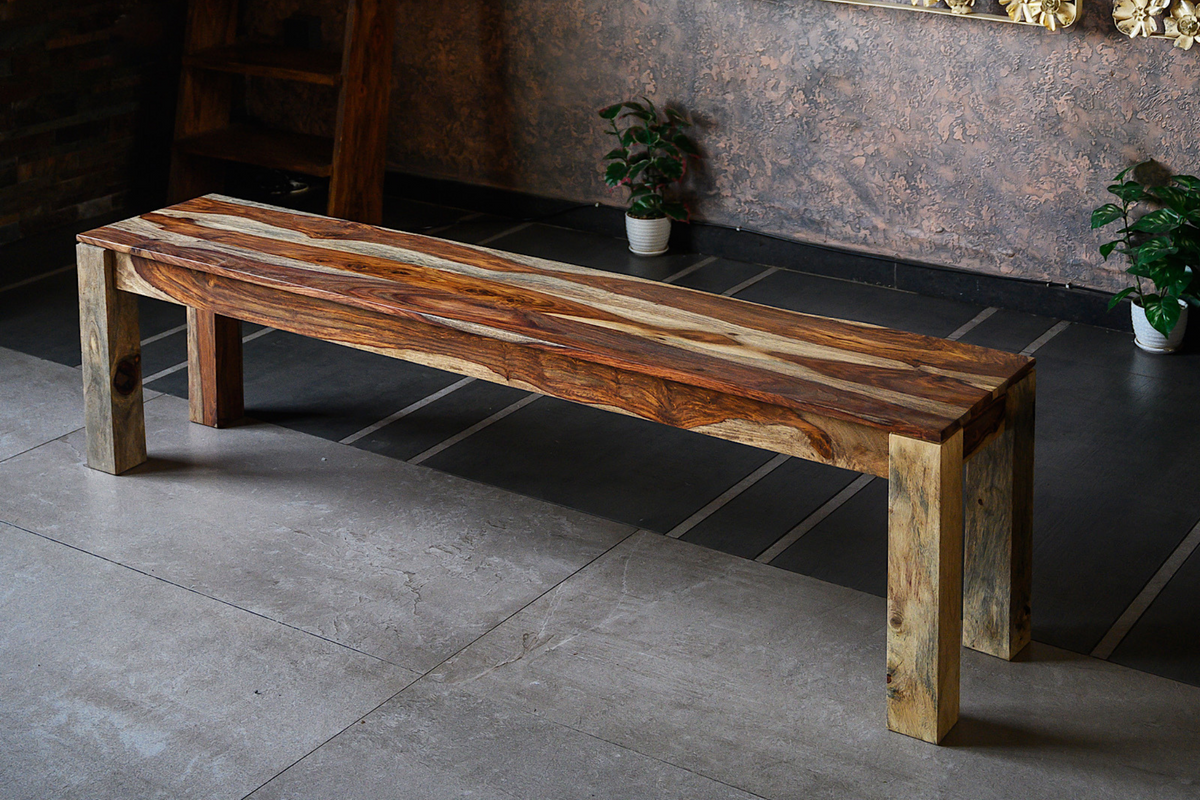 Ce banc en bois de rose massif apporte une touche naturelle et élégante à votre intérieur ou extérieur. Disponible en trois tailles et couleurs, il est parfait pour ajouter du style et de la robustesse à votre espace.