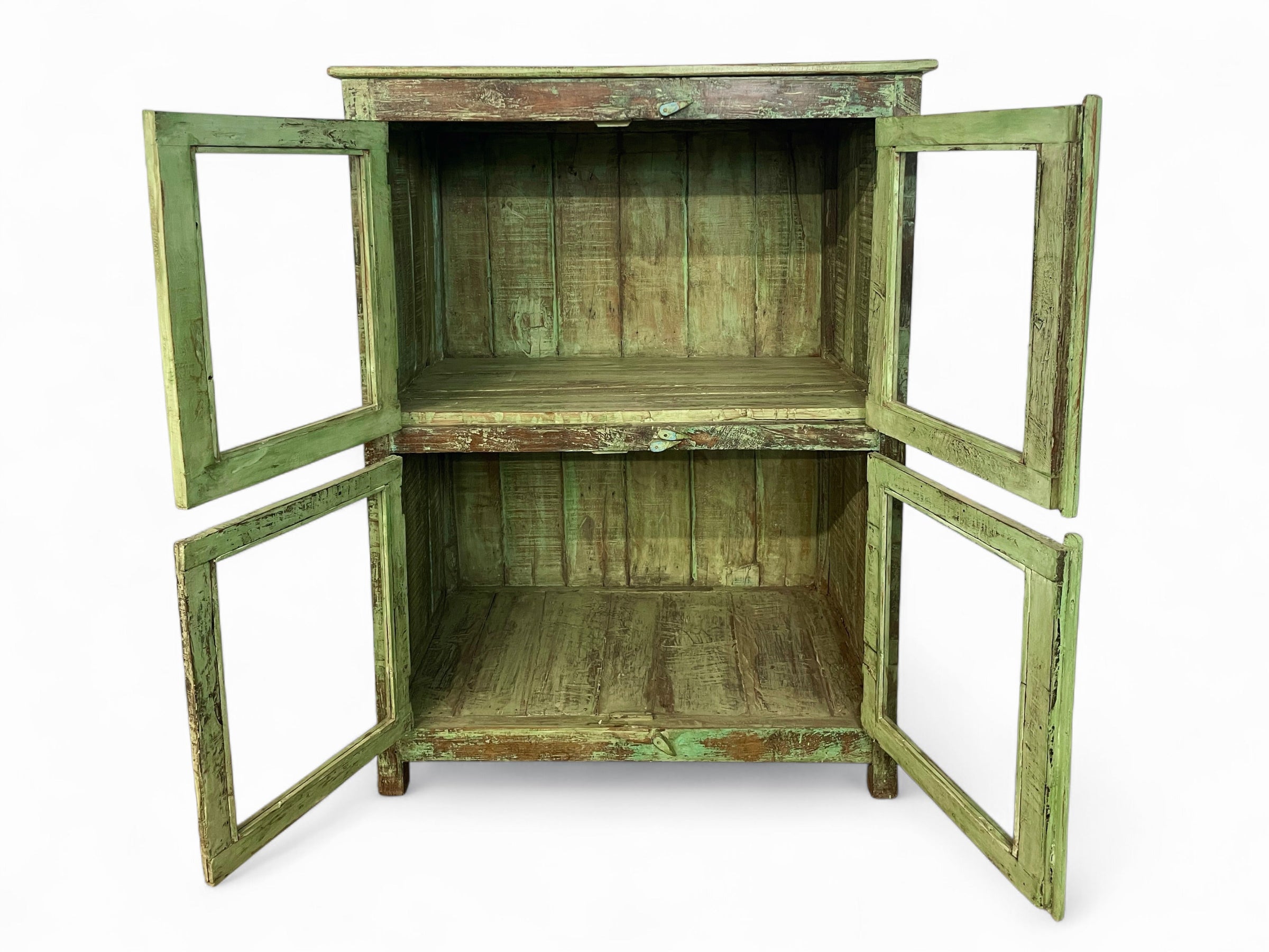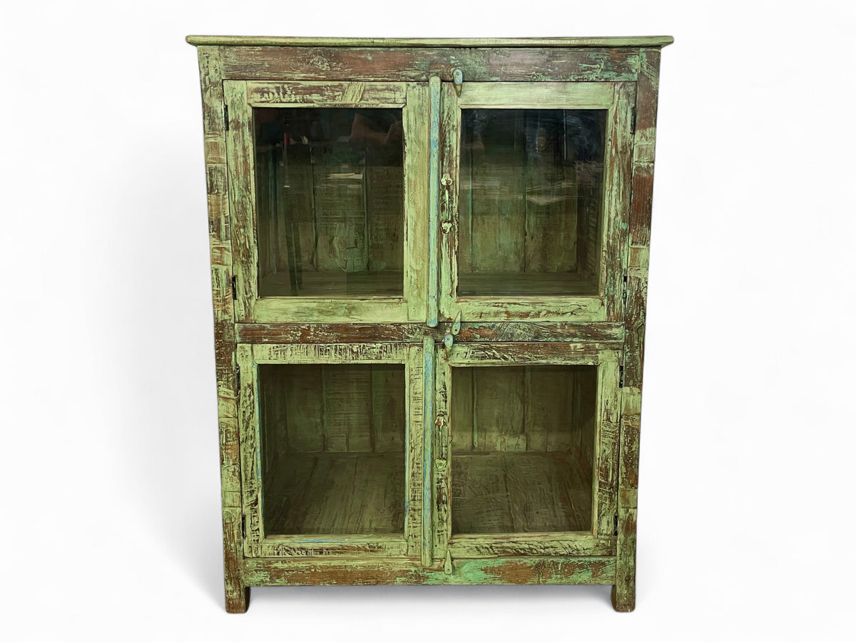 Ce cabinet antique en bois de teck recyclé ajoute une touche de charme rustique et vintage à votre intérieur. Parfait pour le rangement et l'exposition, il combine fonctionnalité et esthétique avec ses matériaux durables.