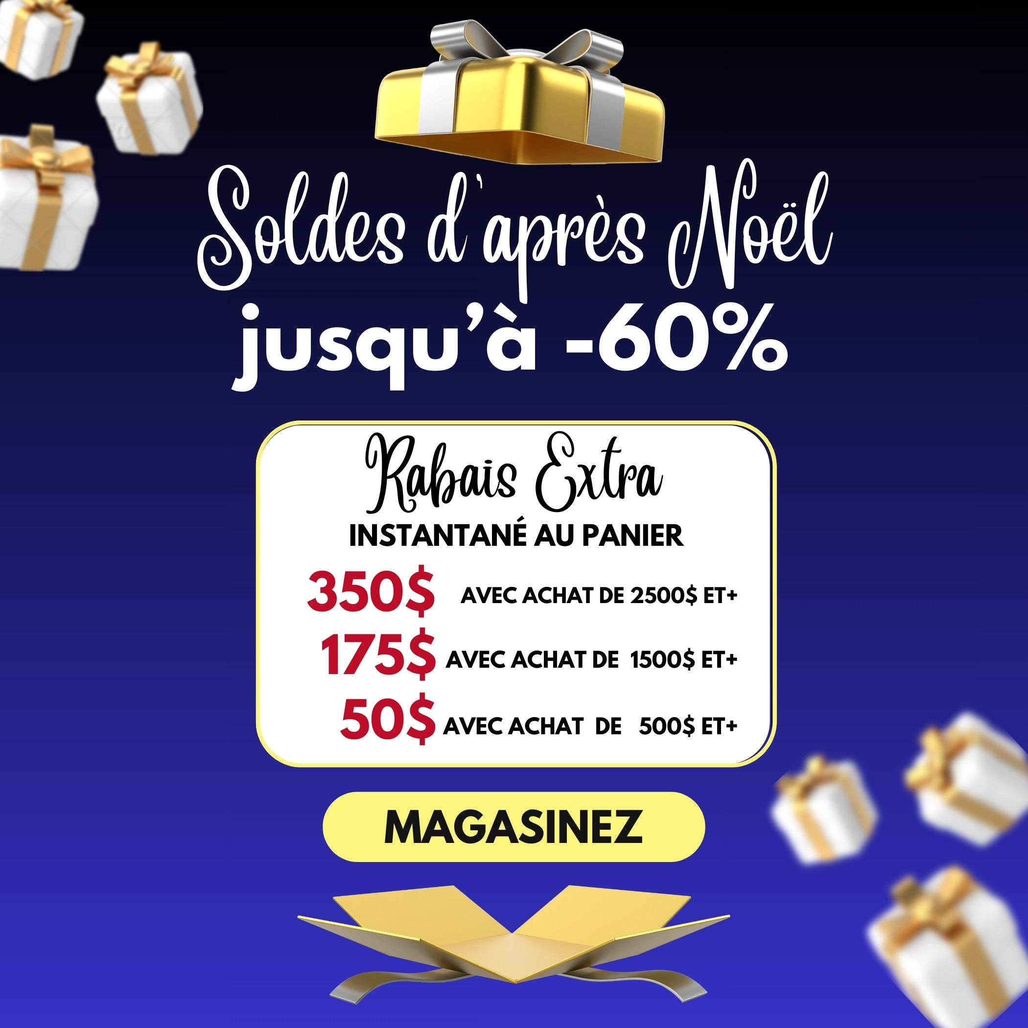 ✅ Achat de 500$ et+ = 50$ RABAIS