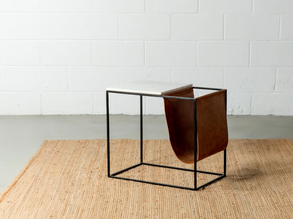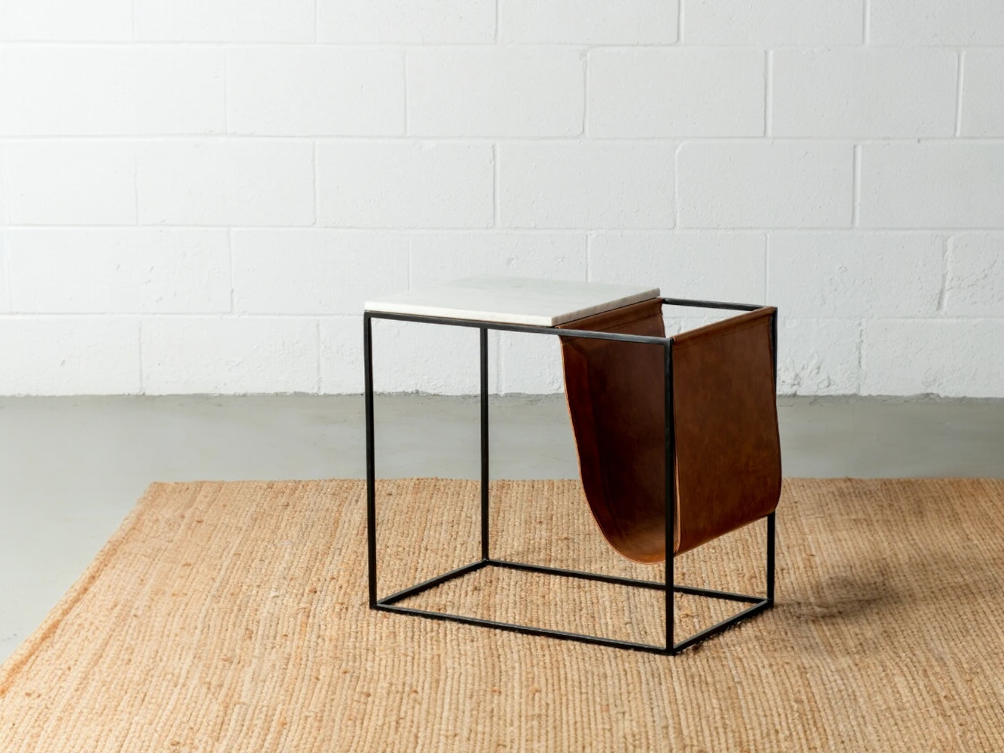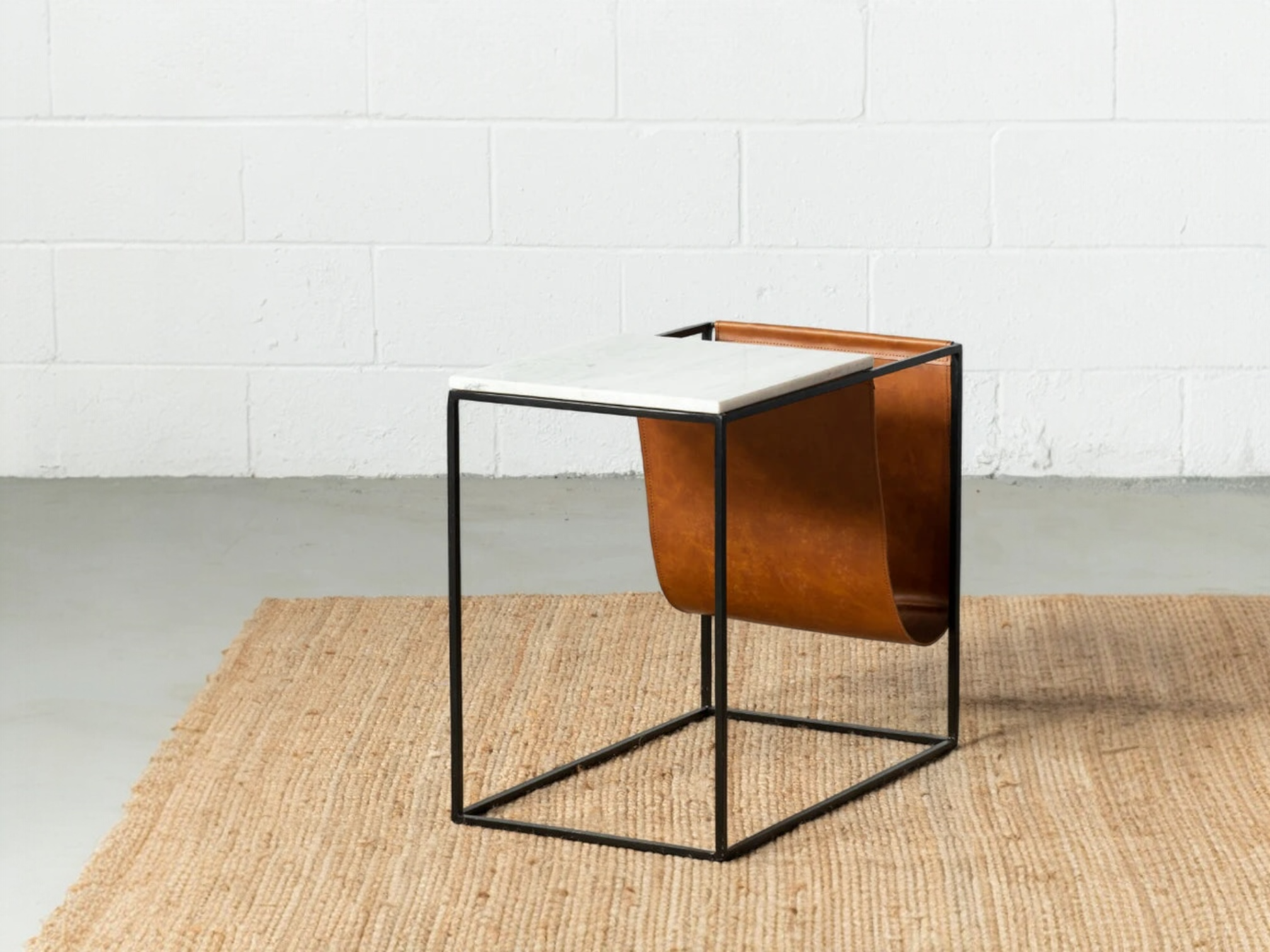 Apportez une touche de luxe et de modernité à votre salon avec cette superbe table à café Masika. Son design raffiné associe avec harmonie un piétement en acier robuste, un repose livres en imitation cuir sophistiqué et un plateau en marbre élégant, créant ainsi un meuble d’exception.